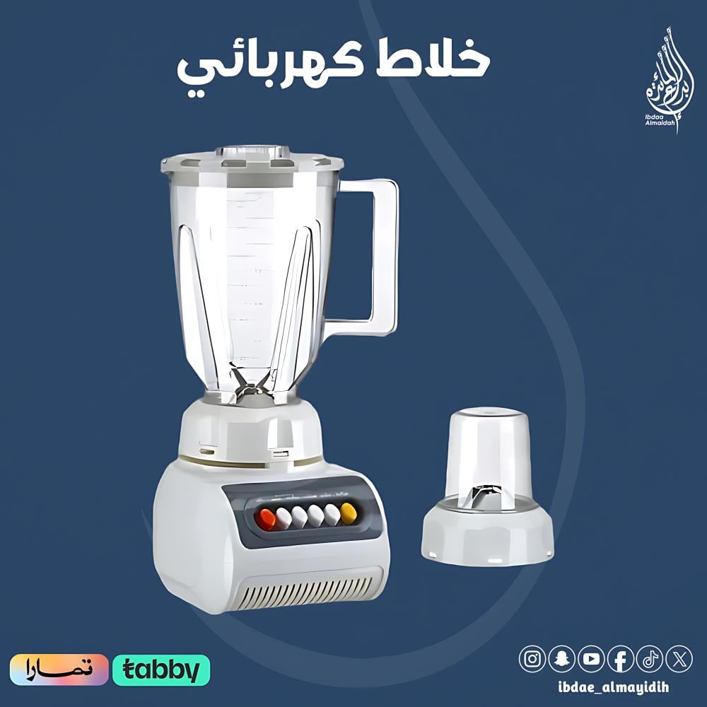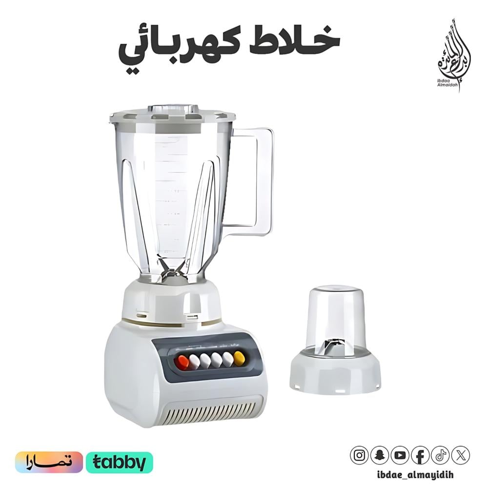 "استمتع بتحضير مجموعة متنوعة من الأطعمة والمشروبات بكل سهولة مع هذا الخلاط الكهربائي 2 في 1 متعدد الاستخدامات. يجمع هذا الجهاز بين وظيفة الخلاط والمطحنة, مما يجعله مثاليا لتحضير العصائر الطازجة, الشوربات الكريمية, التوابل المطحونة, والقهوة الطازجة. سواء كنت تحضر وجبة صحية او مشروبا منعشا, سيساعدك هذا الجهاز على انجاز المهمة بسرعة و كفاءة. كما انه سهل الاستخدام والتنظيف, مما يجعله إضافة عملية لمطبخك."