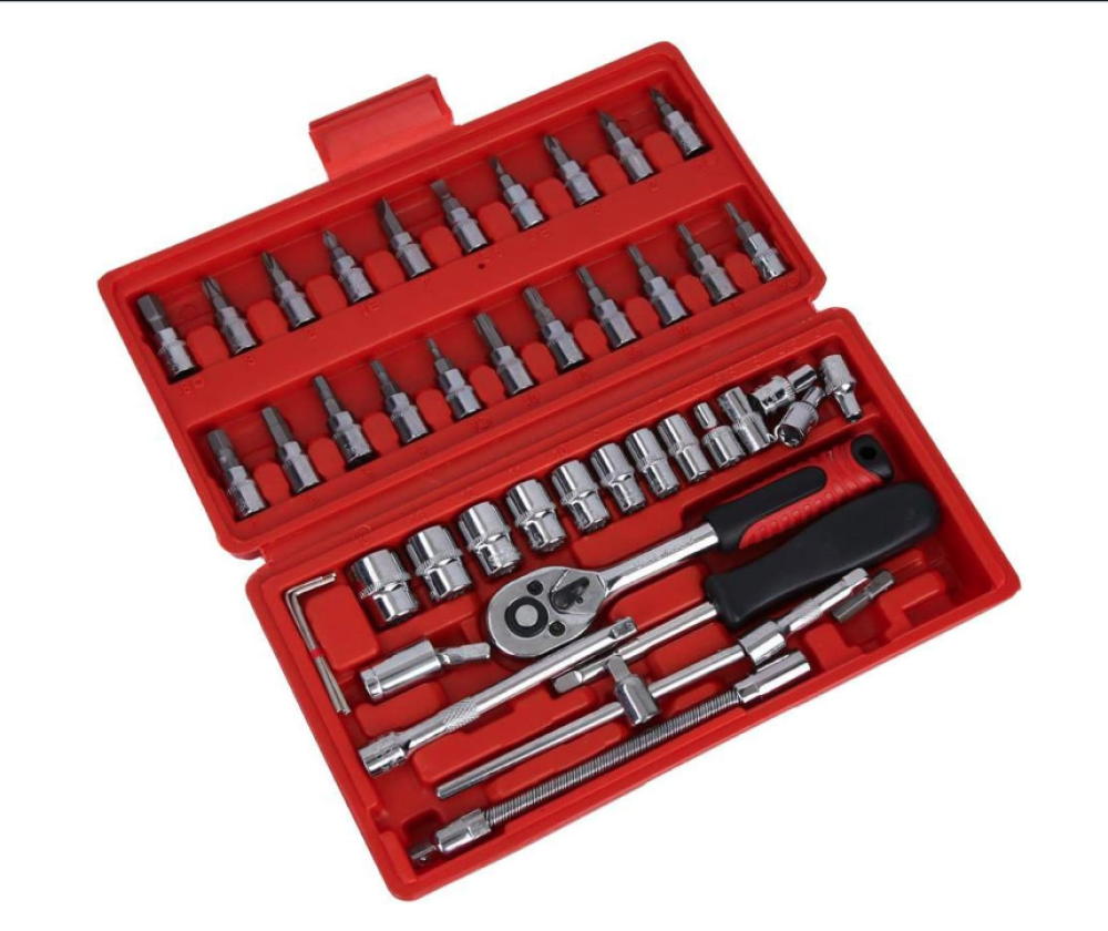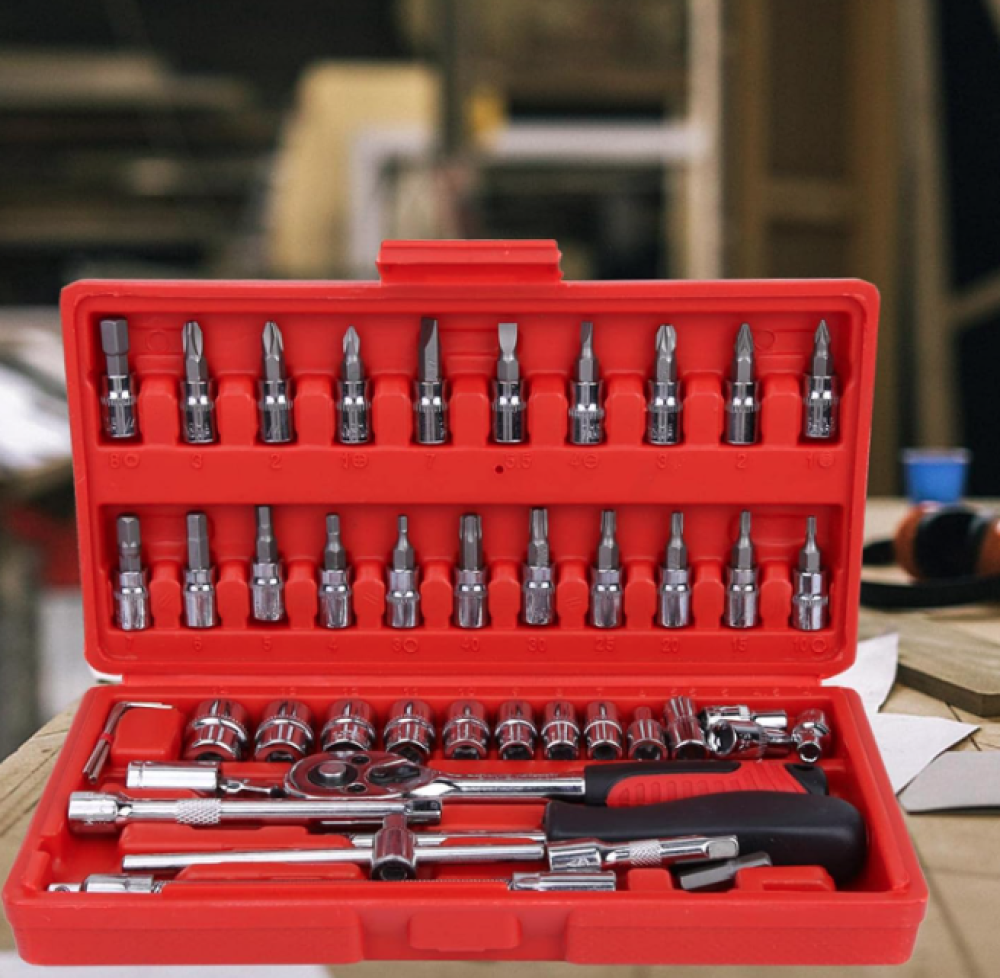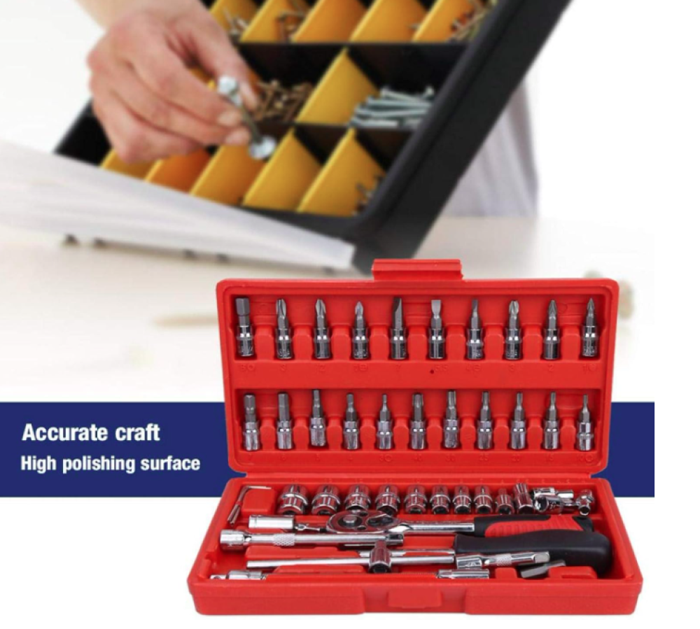 "أنجز مجموعة متنوعة من مهام الربط والفك بدقة وسهولة مع طقم مفاتيح الربط والبراغي 46 قطعة بمقبض 1/4 بوصة. هذه المجموعة العملية والمتكاملة توفر لك تشكيلة واسعة من رؤوس البراغي المختلفة، بالإضافة إلى مفتاح ربط بسقاطة ومجموعة من الملحقات الأساسية، كلها منظمة بشكل جيد في علبة حمراء متينة لسهولة الحمل والتخزين. سواء كنت تقوم بأعمال صيانة منزلية بسيطة أو مشاريع DIY أكثر تعقيداً، فإن هذه المجموعة ستكون إضافة قيمة إلى أدواتك."
