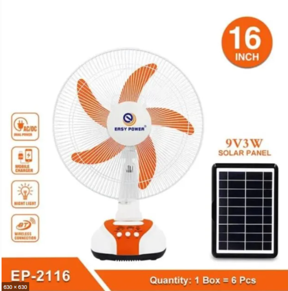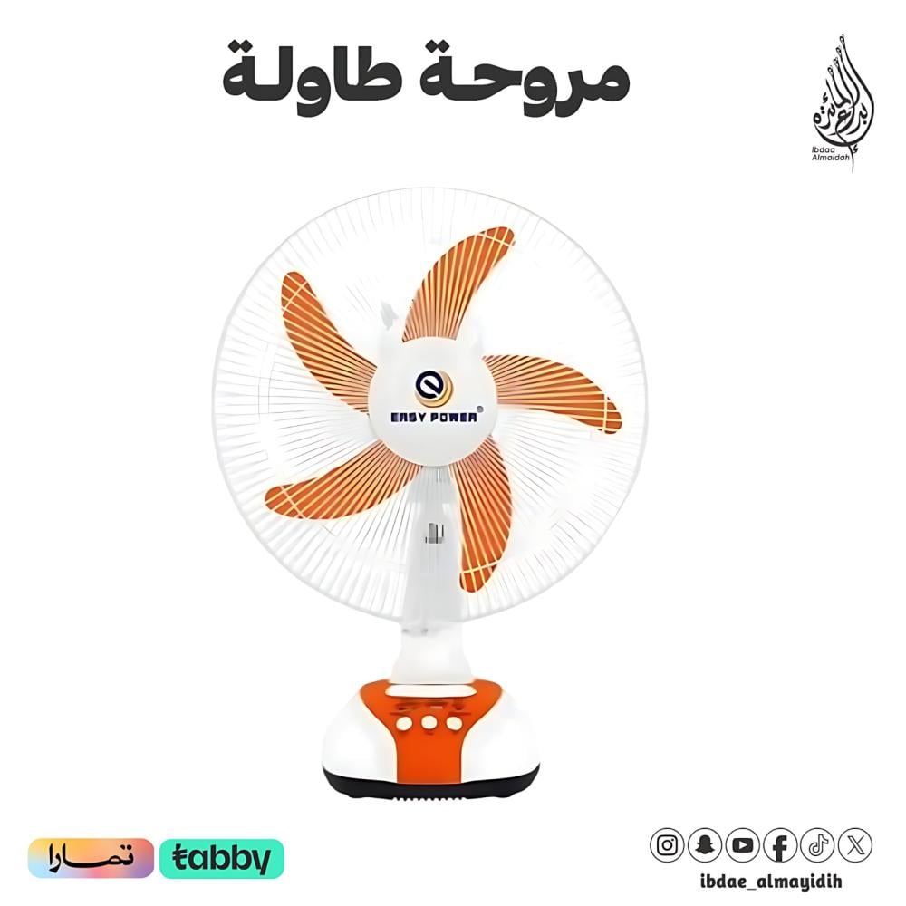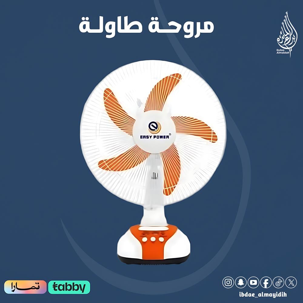 "استمتع بنسيم منعش ومريح مع مروحة الطاولة العملية هذه بحجم 16 بوصة. تتميز هذه المروحة بقدرتها على الدوران بزاوية 60 درجة لتوزيع الهواء بكفاءة في أرجاء المكان. بالإضافة إلى وظيفتها الأساسية، تم تزويدها بشاحن مدمج للهاتف المحمول وإضاءة ليلية ناعمة لتوفير مزيد من الراحة. تعمل هذه المروحة لاسلكيًا وبقوة 3 واط فقط، مما يجعلها خيارًا موفرًا للطاقة وعصريًا."