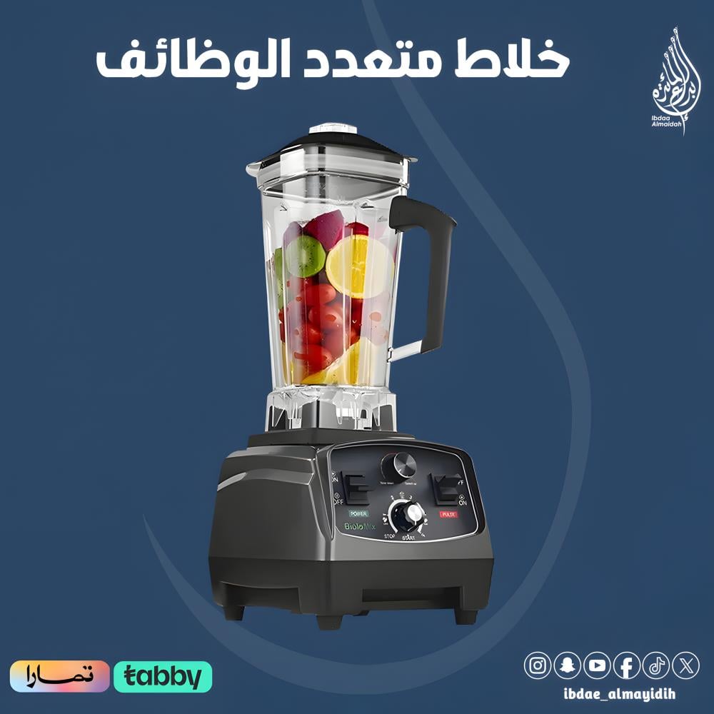* تعدد الاستخدامات: يتيح لك خلط الفواكه والخضروات، طحن الحبوب والتوابل، وتكسير الثلج بسهولة.